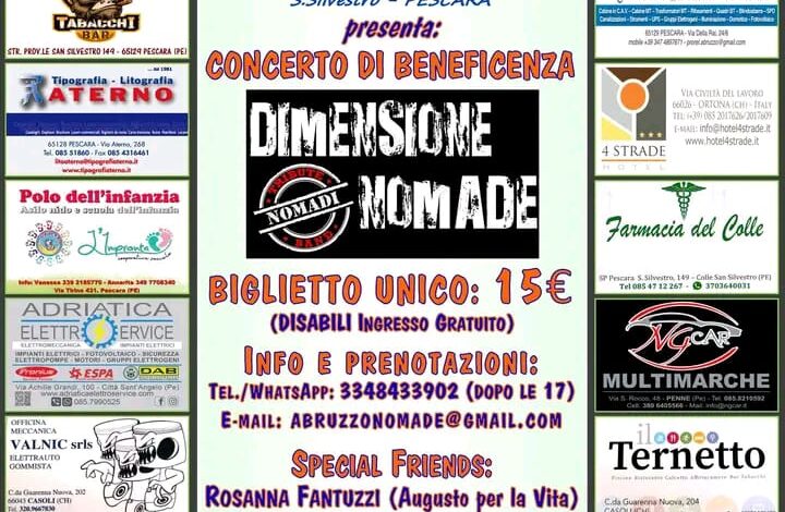 Pescara. Torna nel prossimo fine settimana l’appuntamento con un evento di musica e solidarietà organizzato dall’associazione Abruzzo Nomade di San Silvestro, Pescara, fans club ufficiale abruzzese dello storico gruppo musicale “I Nomadi”.