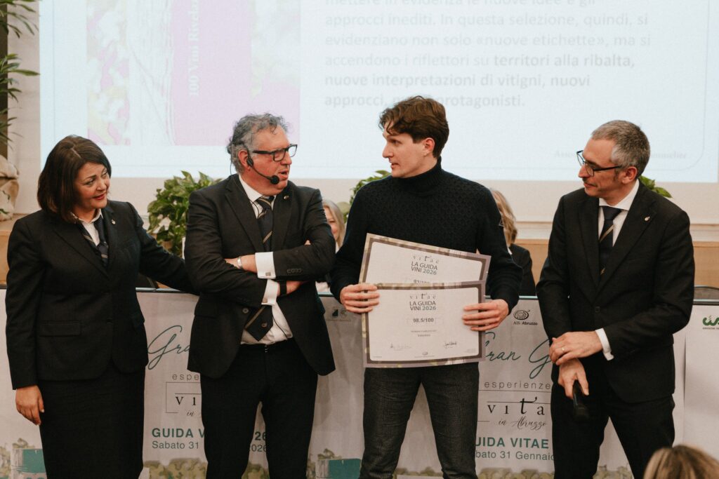 Nel corso della serata è stata presentata la dodicesima edizione della Guida Vitae 2026, che raccoglie il meglio della produzione vitivinicola abruzzese. In questa edizione ci sono 76 aziende abruzzesi recensite, un record assoluto, e 45 eccellenze, ovvero vini che superano i 90 centesimi di valutazione. Di questi, 15 sono inseriti tra le migliori 100 etichette d’Italia. Si registra inoltre la performance del Trebbiano d’Abruzzo 2021 dell’azienda agricola Valentini, nominato, con 98,5/100, il miglior vino d Italia.