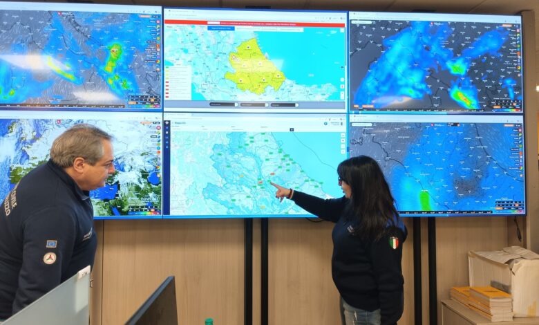 Dal pomeriggio, l’arrivo di aria fredda dai quadranti settentrionali determinerà un sensibile calo delle temperature portando la quota neve in sensibile calo, prima sui settori adriatici, poi sulle aree interne, fino a ca. 600 m s.l.m., localmente più in basso laddove le precipitazioni saranno più intense. La discesa di aria fredda sarà accompagnata da raffiche di vento forte da Nord-Nordovest soprattutto sulle province adriatiche.