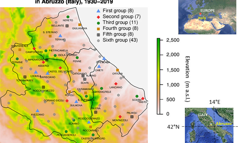 I dati meteorologici delle stazioni abruzzesi sono raccolti dall’Ufficio idrologia, idrografico e mareografico dell’Agenzia Regionale di Protezione Civile dell’Abruzzo ed elaborati dal CETEMPS dell’Università degli Studi dell’Aquila, secondo la metodologia illustrata in https://rmets.onlinelibrary.wiley.com/doi/10.1002/joc.7081.