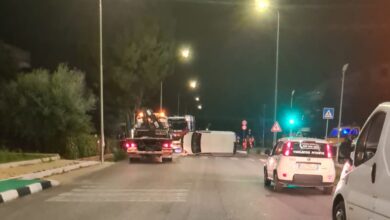 Tortoreto, incidente notturno alla rotonda: si cappotta un furgone