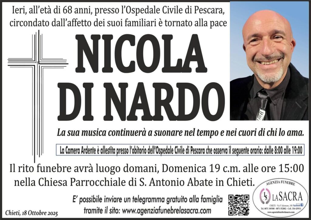 Chieti. La città e la comunità dell’Università “Gabriele D’Annunzio” piangono la scomparsa di Nicola Di Nardo, pianista e musicista amato, scomparso il 17 ottobre 2025 a Pescara, dopo una breve malattia affrontata con coraggio e silenziosa dignità.