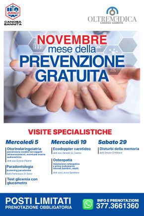L’iniziativa nasce proprio dalla sinergia tra ACLI Canosa Sannita e il poliambulatorio Oltremedica, con l’intento di offrire ai cittadini un’opportunità concreta di prevenzione e di attenzione verso la propria salute.