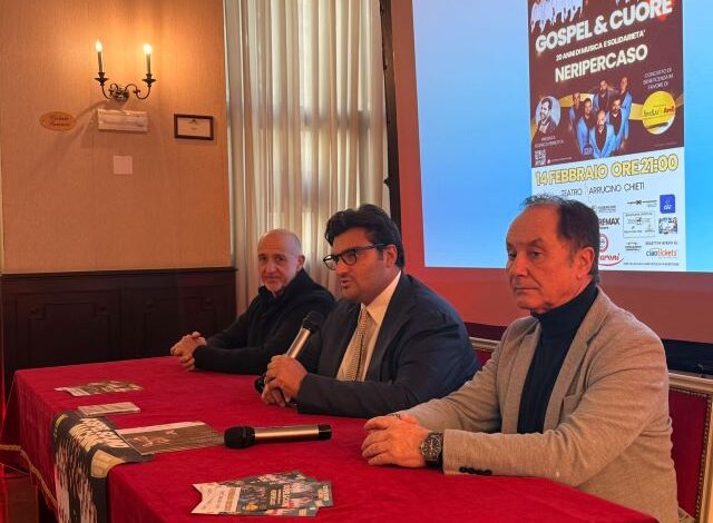 Chieti. Sarà un sabato di amore e solidarietà il 14 febbraio al Marrucino di Chieti grazie al concerto “Gospel & Cuore – 20 anni di musica e solidarietà”, iniziativa a scopo benefico, vedrà la partecipazione di Neri per Caso come special guest, sarà condotto dal cabarettista Federico Perrotta e parte del ricavato sarà devoluto all’Associazione IncluSiamo, impegnata nel sostegno alle persone con disabilità e malattie rare. Stamane la presentazione con il Vicesindaco Paolo De Cesare, il Maestro Loris Medoro, direttore maestro; Rinaldo Spinozzi, presidente del Gruppo corale sound Machine; Daniele Buccella, membro del direttivo; Emanuela Biagioli, corista e addetta alla comunicazione; Daniela D’Olimpio, rappresentante dei coristi, che illustreranno i contenuti artistici e solidali dell’iniziativa, promossa in occasione del 20° anniversario dei Gospel Sound Machine che ne è motore.