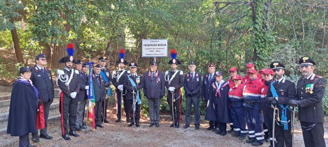 Chieti. Questa mattina ,all’interno della Villa Comunale di Chieti, è stata apposta la nuova targa indicante il Piazzale dedicato all’eroico Capitano dei Carabinieri Chiaffredo Bergia ,Medaglia d’Oro al Valor Militare, offerta dall’Associazione Nazionale Carabinieri Sezione di Chieti ,presieduta dal Dott.C.re Mario COLANTONIO.