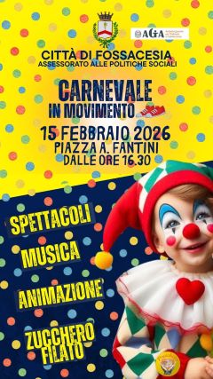 Fossacesia si prepara a vivere un pomeriggio di festa, energia e inclusione con “Carnevale in Movimento”, l’iniziativa in programma domenica 15 febbraio , dalle ore 16:30, in Piazza Fantini.