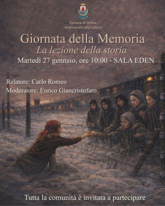 Ortona. Martedì 27 gennaio, alle ore 10.00, nella Sala Eden, il Comune di Ortona celebra il Giorno della Memoria con l’incontro pubblico “La lezione della storia”, promosso dall’Assessorato alla Cultura.