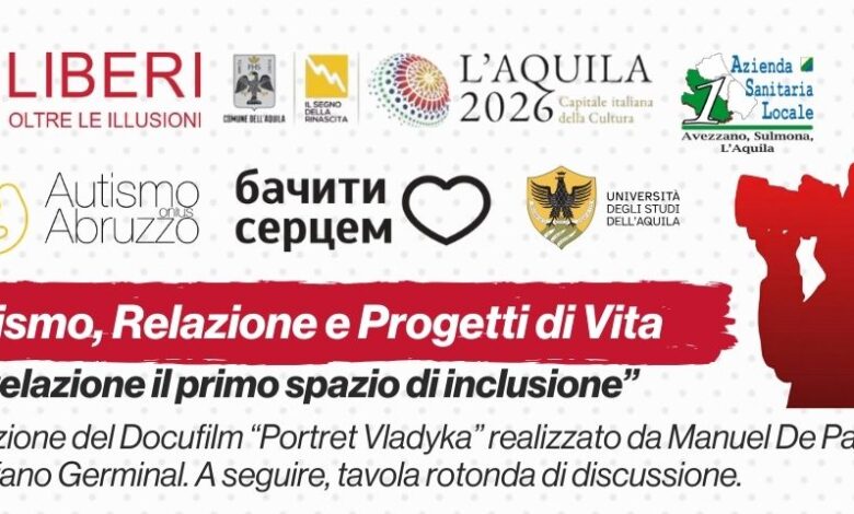 Nella prima parte, dopo i vari saluti istituzionali, ci sarà la proiezione del docufilm “Portret Vladyka” realizzato nel 2023 da BlackOrange, Manuel De Pandis e Stefano Germinal in collaborazione con Autismo Abruzzo Onlus. Il docufilm racconta il percorso di vita di Vladic, ragazzo autistico, dai primi anni di vita in ucraina fino alla nuova vita a L’Aquila dove coltiva la sua passione per la fotografia artistica, passando per le varie esperienze in orfanotrofio ed gli anni vissuti a Vasto dopo l’adozione.