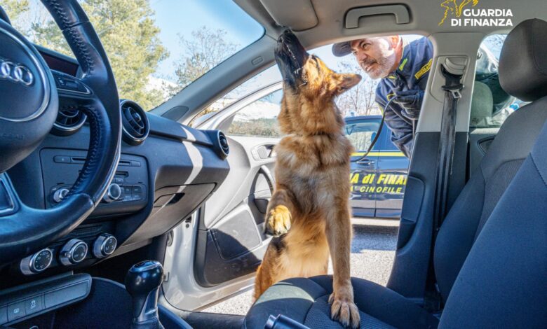 Sin da subito, il soggetto ha mostrato segni di nervosismo che hanno indotto i finanzieri del Nucleo di Polizia Economico-Finanziaria ad effettuare un controllo più approfondito, reso possibile anche grazie all’intervento di un’unità cinofila del locale Gruppo della Guardia di Finanza, che ha palesato un forte interesse per la persona che era alla guida, facendo insospettire ancora di più i militari operanti.
