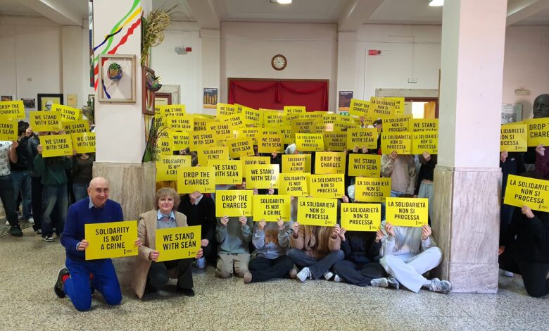 Pescara. Lunedì 1 dicembre, la comunità del Liceo Classico d’Annunzio di Pescara ha dato vita ad un’azione di solidarietà per Seán Binder, un giovane difensore dei diritti umani di trentuno anni che – nel processo che si terrà a Lesbo mercoledì 4 dicembre – rischia fino a 20 anni di carcere per reati quali: favoreggiamento dell’immigrazione irregolare, appartenenza a un’organizzazione criminale e riciclaggio.