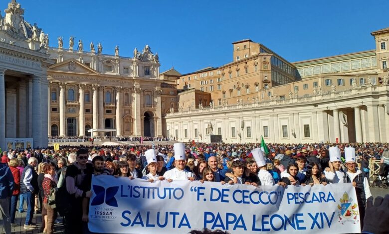 Pescara. Una delegazione dell’Ipssar ‘De Cecco’ di Pescara, composta da circa 600 tra studenti, docenti e famiglie, si è recata in piazza San Pietro per l’udienza per il Giubileo da Papa Leone.