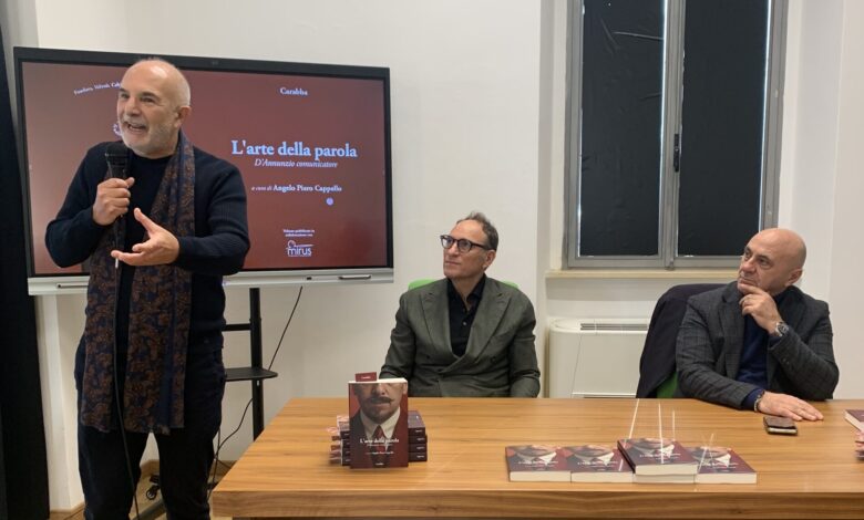 Pescara. È stato presentato sabato mattina, presso il Circolo Aternino di Pescara, il volume L’arte della parola. D’Annunzio comunicatore, edito da Carabba Edizioni e curato da Angelo Piero Cappello, prima opera editoriale che affronta in modo organico e sistematico la figura di Gabriele d’Annunzio come comunicatore.