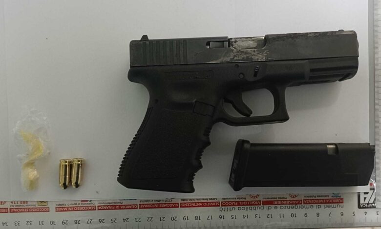 I carabinieri, quindi, hanno perquisito il 44enne, trovandolo in possesso di due cartucce calibro 9 per pistola e un involucro in cellophane termosaldato contenente 1 grammo circa di cocaina. I successivi accertamenti svolti dai militari hanno permesso di ricostruire l’evoluzione dei fatti: l’uomo, mentre si trovava all’interno del locale, aveva minacciato con una pistola l’addetto alla sicurezza che, a seguito di una breve colluttazione, è riuscito prontamente a disarmarlo dell’arma, risultata essere una pistola modello Glock calibro 9×19 con matricola abrasa, poi trattenuta all’interno della cassaforte del locale e consegnata immediatamente ai Carabinieri al loro arrivo.