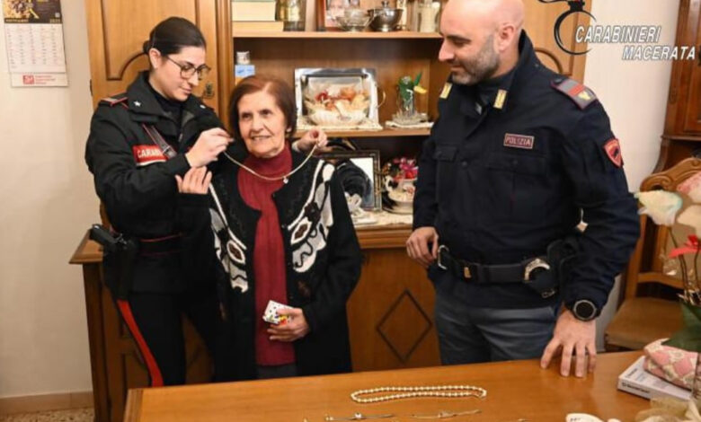 Al momento dell’intervento, gli investigatori della Squadra Mobile e della Polizia Stradale hanno sottoposto a perquisizione il veicolo e le due donne, riuscendo non solo ad appurare che fossero effettivamente le finte carabiniere segnalate, ma riuscendo anche a rinvenire tutta la refurtiva sottratta alla 79enne di Macerata. Inoltre, la conducente è stata trovata in possesso di una dose di cocaina, motivo per cui è stata anche sanzionata amministrativamente con contestuale ritiro della patente di guida.