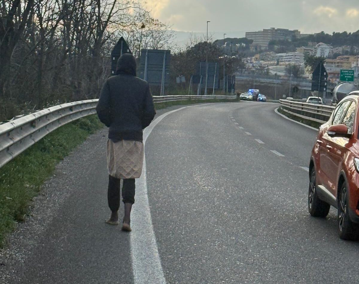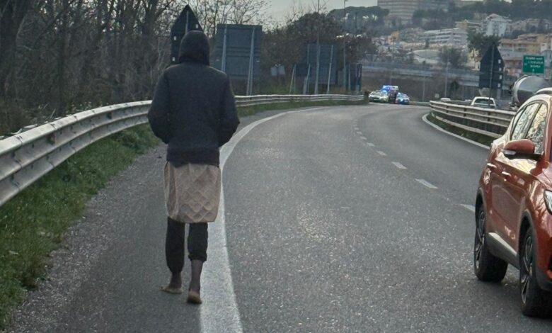 A piedi lungo la Teramo mare, scalzo e per fortuna notato dal vice commissario della polizia municipale e vigile ecologico Vincenzo Calvarese.