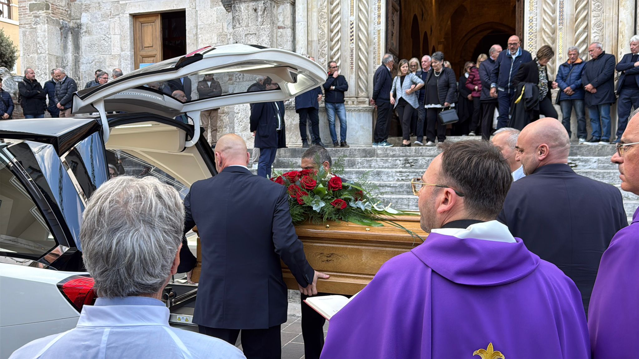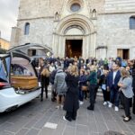 Sulla bara, non a caso, una maglia del Teramo con il suo nome, la toga a lui tanto cara e il fazzoletto degli scout.