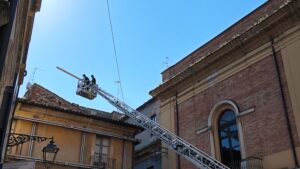 Dopo il crollo di una porzione di solaio dei giorni scorsi, i pompieri del comando provinciale hanno avuto infatti la necessità di rimuovere la copertura temporanea installata e metterne una più solida, in caso di maltempo.