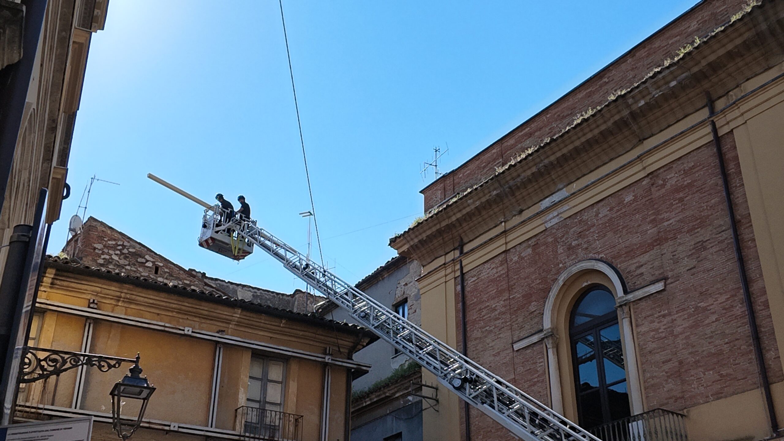 I vigili del fuoco sono tornati questa mattina nel vecchio Municipio di Teramo di piazza Orsini.