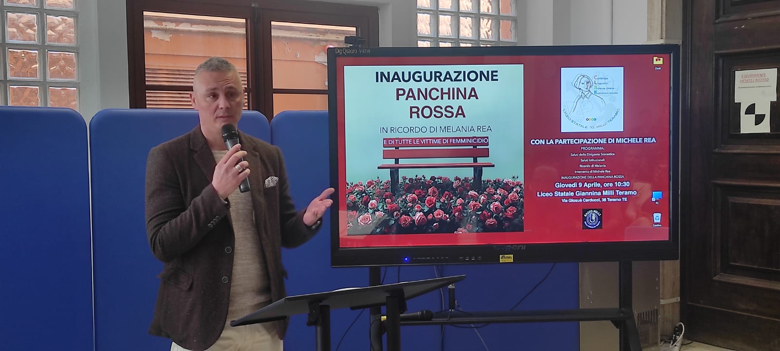 Alla cerimonia di inaugurazione ha preso parte il papà e il fratello Michele, invitati dalla dirigente scolastica Manuela Divisi, oltre a rappresentanti delle istituzioni comunali, provinciali e regionali, insieme a docenti e studenti.
