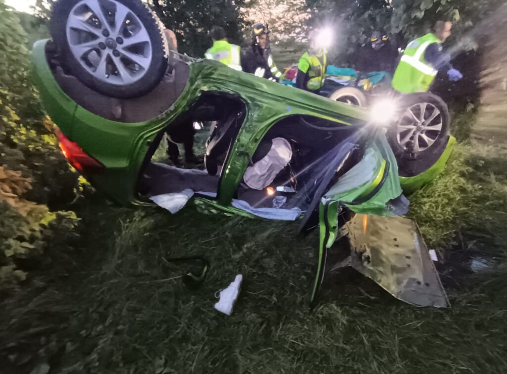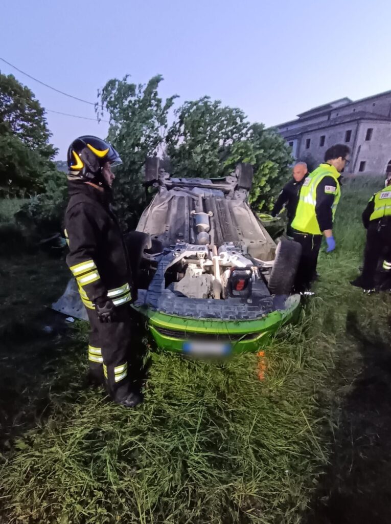 Incidente prima dell’alba in contrada Riomoro a Colonnella quando, intorno alle 5.30, un’auto con a bordo quattro giovanissimi si è ribaltata per cause in corso di accertamento.