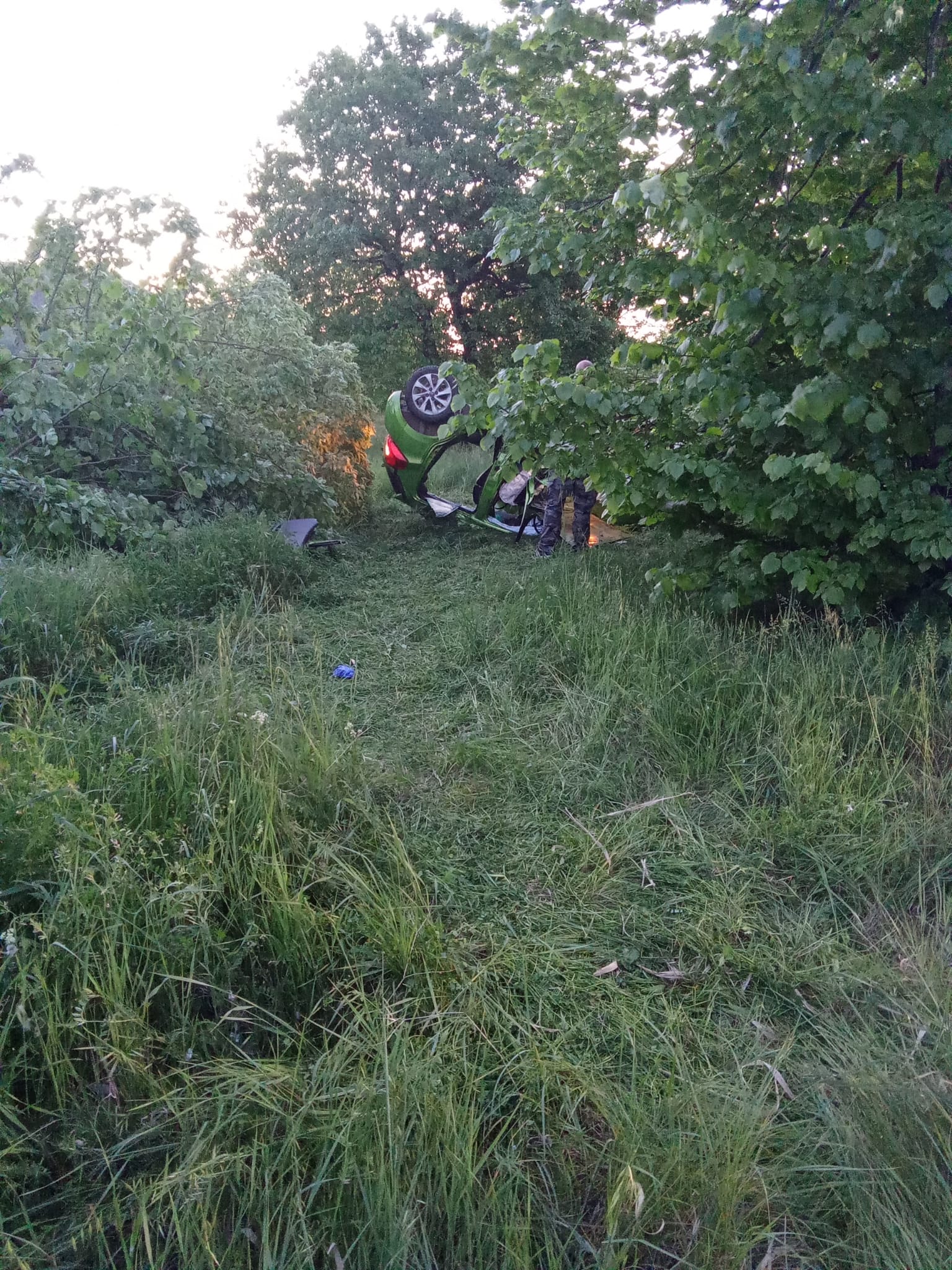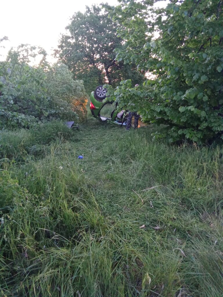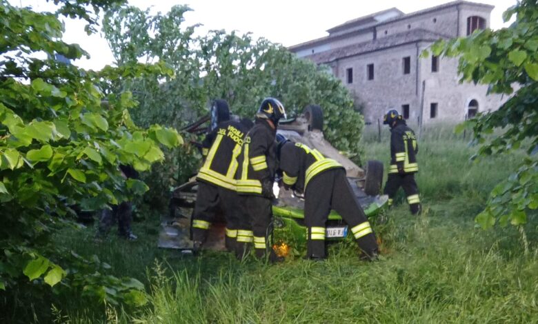 L’auto percorreva la strada provinciale, nella zona del centro commerciale, in direzione Colonnella e dopo essere uscita di strada, ha abbattuto due alberi e si è ribaltata sul tettuccio, nel terreno adiacente alla strada.
