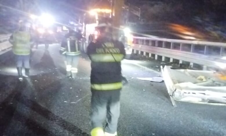 A causa del violento impatto l’auto ha sbandato ed ha urtato la barriera jersey di separazione dalla carreggiata sud. La conducente dell’auto è rimasta ferita lievemente ed è stata trasportata in ospedale con un’ambulanza. I vigili del fuoco hanno messo in sicurezza i mezzi incidentati e verificato le condizioni del cavalcavia rimuovendo alcune piccole porzioni di calcestruzzo pericolanti. La carreggiata nord dell’A14 è rimasta chiusa al traffico per oltre un’ora, fino al ripristino delle ordinarie condizioni di viabilità. Per la rimozione e il recupero del mezzi incidentati sono stati impiegati alcuni carroattrezzi. Sul posto hanno operato pattuglie della Polizia Stradale ed Autostradale per la regolazione del traffico e gli adempimenti di propria competenza, oltre a personale dell’autostrada che ha provveduto al ripristino della viabilità.