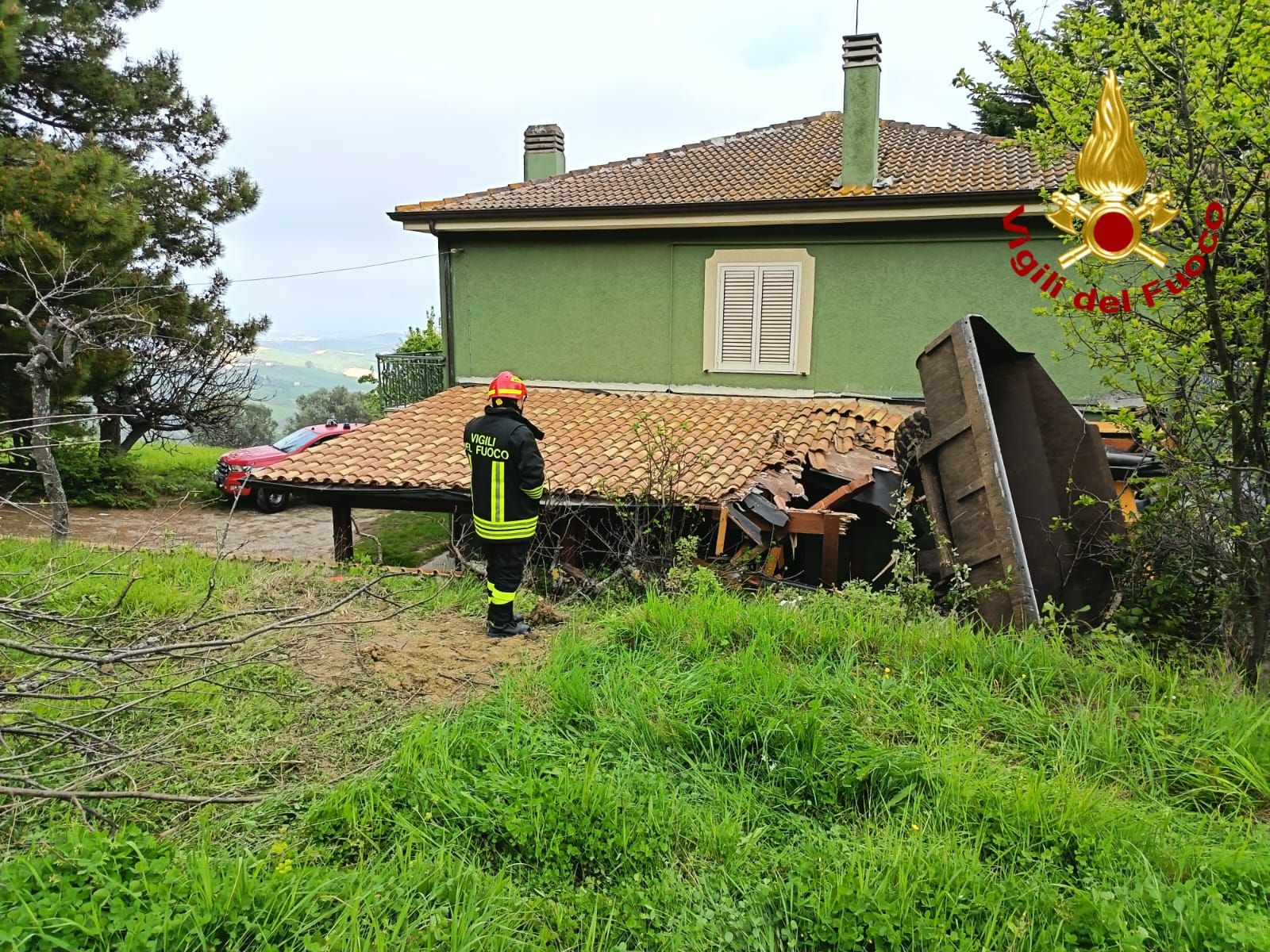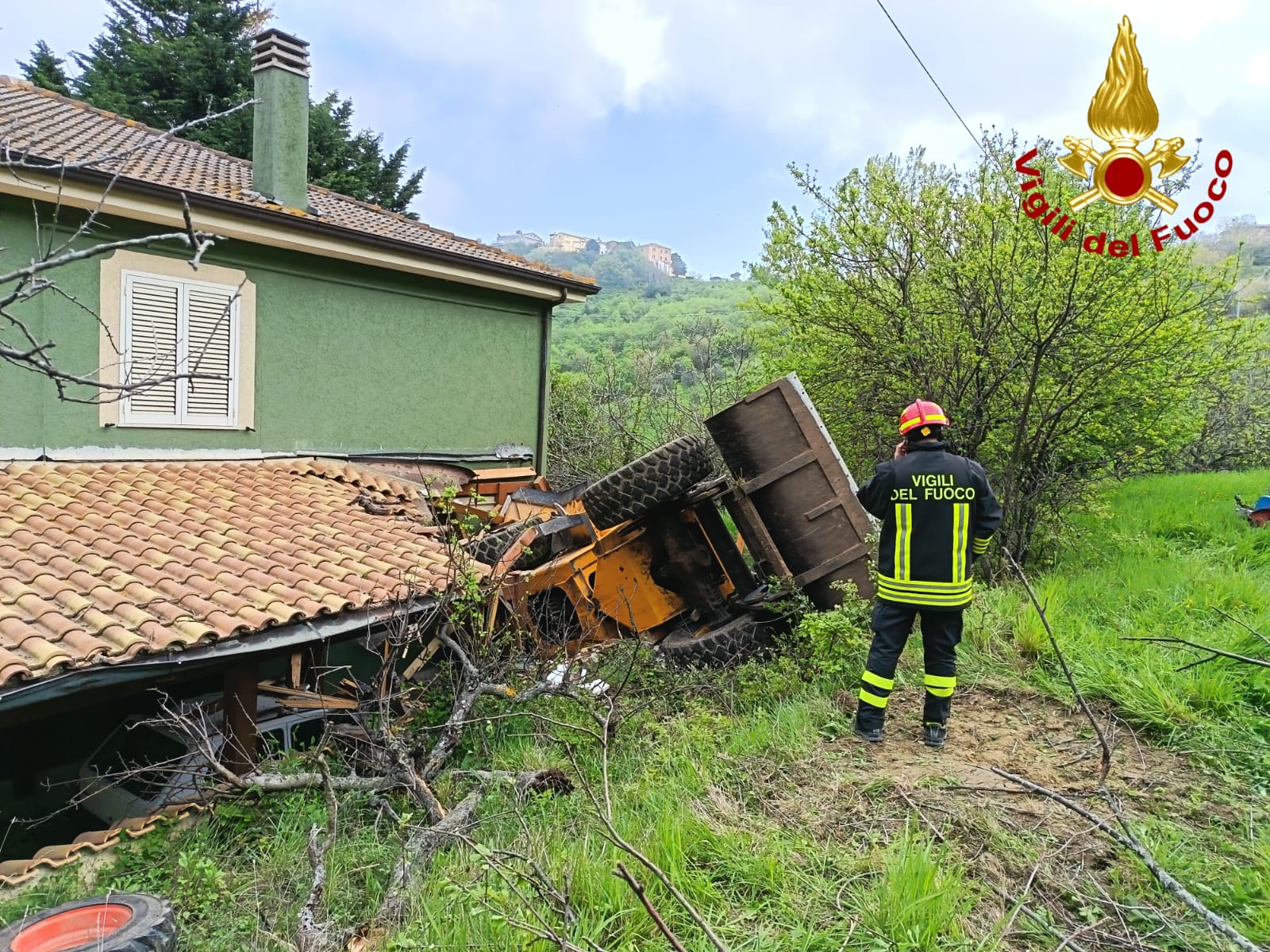 La squadra del distaccamento di Roseto all’arrivo sul posto ha constatato che la pala meccanica era rotolata lungo un pendio a bordo strada finendo la sua corsa contro un’abitazione e una tettoia in legno adiacente alla stessa.