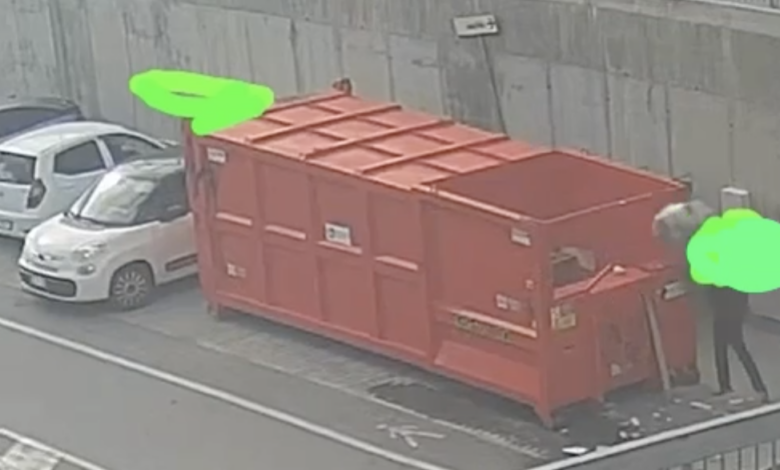 Getta la spazzatura nel container di un supermercato a Teramo VIDEO