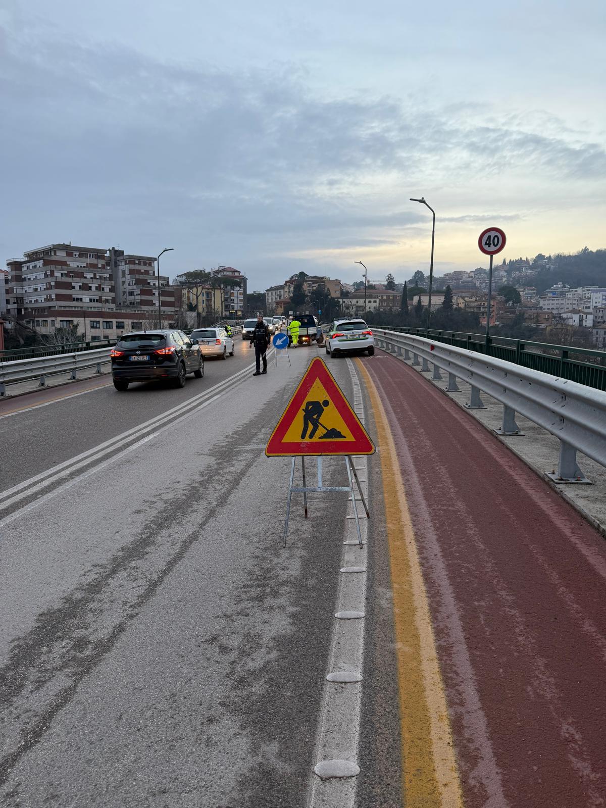 Personale del Comune di Teramo è intervenuto nel tardo pomeriggio lungo ponte San Gabriele per sistemare un giunto che si è “mosso”, creando una sorta di avvallamento sull’asfalto.