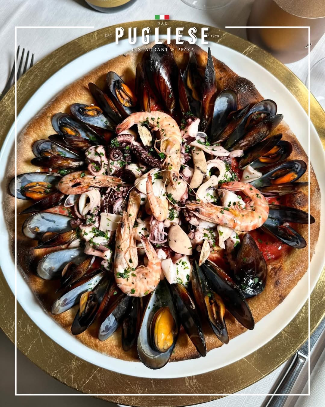 Al Ristorante dal Pugliese, la pizza ai frutti di mare è tra le proposte più apprezzate. Ricca, profumata e preparata con ingredienti selezionati, si distingue per l’impasto leggero e lavorato con cura.