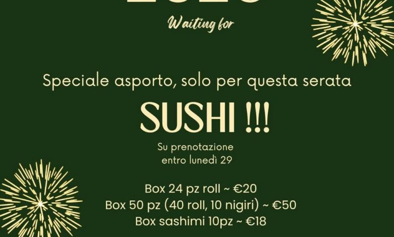 Non resta che prenotare: ai primi dieci ordini di sushi, infatti, verrà applicato uno sconto del 10%, un’occasione in più per rendere speciale l’ultima notte dell’anno.