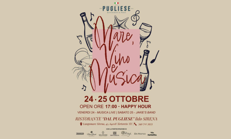 Una serata indimenticabile si prepara a illuminare il Lungomare Sirena: il ristorante Dal Pugliese lancia la prima edizione di “Mare, Vino e Musica”, un evento pensato per celebrare i sapori autentici, i profumi del mare e le vibrazioni della musica dal vivo.