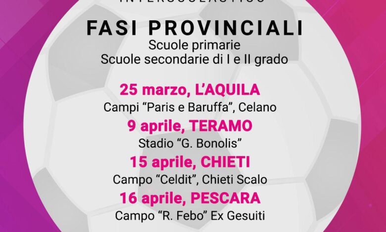 Abruzzo. Al via domani la quarta edizione del torneo interscolastico di calcio femminile “Gioca con noi, facciamo squadra”, iniziativa ormai strutturale nella programmazione del calcio giovanile femminile abruzzese, promossa dalla LND Abruzzo in collaborazione con il Settore Giovanile e Scolastico, l’Ufficio Scolastico Regionale per l’Abruzzo e con il coinvolgimento del CONI.