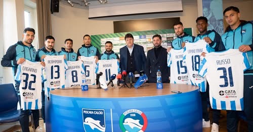 Presentazione, questa mattina all’Hotel Ekk di Città Sant’Angelo, dei nuovi arrivati in casa Pescara, dopo la sessione di mercato di gennaio.