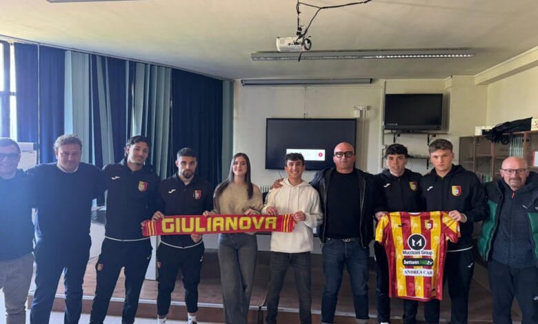 Una delegazione composta dal presidente Alessandro Mucciconi, dal team manager Matteo Bianchini, dal capitano Mirko Esposito e dai calciatori Joshua Vuillermoz, Tommaso Carbonelli e Lorenzo Chiarella ha dialogato con gli studenti, che hanno avuto l’opportunità di intervistare dirigenti e giocatori, ponendo domande e curiosità sul mondo del Giulianova calcio e sulla vita dello sportivo dentro e fuori dal campo.