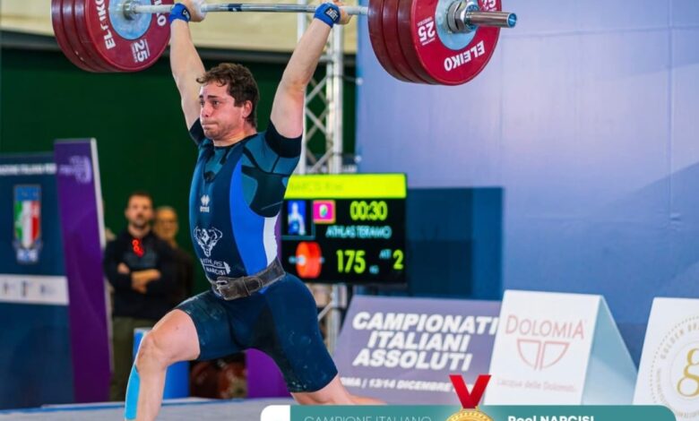 Con pochi mesi di allenamento, solo, lontano da casa, ha vinto gli assoluti con una gara impeccabile: sei prove valide su sei con un totale di 316 Kg ( strappo 136 Kg – slancio 180 Kg ).