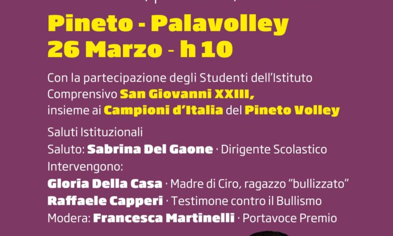 Si terrà il prossimo 26 marzo 2026 alle 10, nel Palavolley di Pineto, una importante giornata dedicata alla lotta contro il bullismo e il cyberbullismo, promossa dal Premio Nazionale Paolo Borsellino, da sempre impegnato nella diffusione dei valori della legalità e del rispetto tra i giovani.