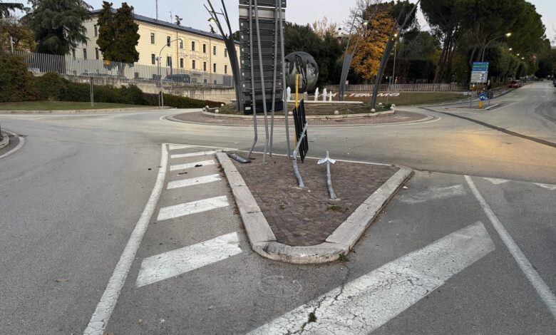 Un conducente nella scorsa notte ha abbattuto la segnaletica verticale della rotonda di Largo Tancredi a Teramo.