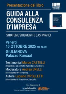 A moderare l’incontro Andrea Grelli, consulente HR e Trainer.Il volume, edito da Maggioli Editore, fornisce strumenti concreti e racconti reali e si rivolge a imprenditori, studenti e curiosi, nato dal dialogo con le imprese e per le imprese.