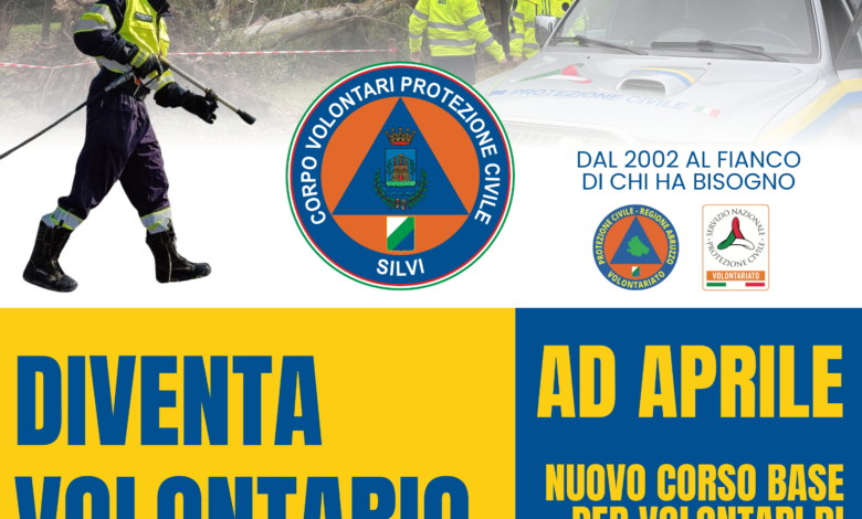 Il Corpo Volontari Protezione Civile Silvi annuncia l’avvio, nel mese di aprile, di un nuovo Corso Base per Aspiranti Volontari di Protezione Civile, rivolto a tutti i cittadini che desiderano avvicinarsi al mondo del volontariato e dare un contributo concreto alla sicurezza e al benessere della comunità.