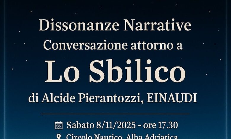 Alba Adriatica accoglie per la prima volta l’autore de Lo Sbilico, Alcide Pierantozzi: letteratura, identità e territorio si incontrano al Circolo Nautico, sul Lungomare Marconi, sabato 8 novembre alle ore 17.30.