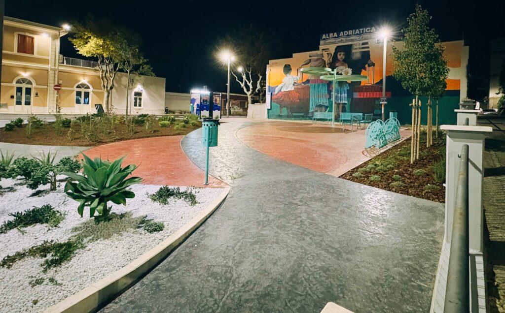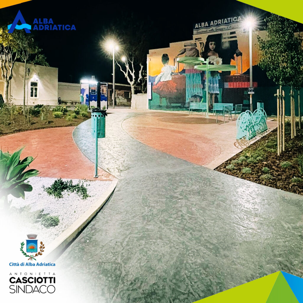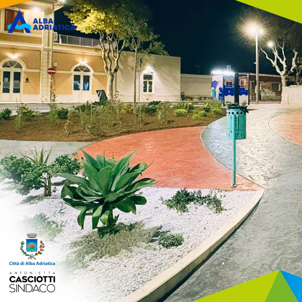 Alba Adriatica. Sono stati completati i lavori di realizzazione dello spazio pubblico antistante la stazione ferroviaria: area di risulta restituita alla comunità dopo la demolizione di un vecchio immobile e i successivi lavori.