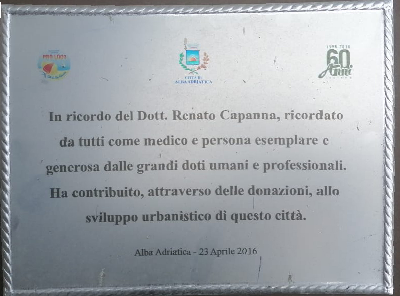 Un’eredità di generosità e altruismo. La storia di Alba Adriatica è indissolubilmente legata alla famiglia Capanna. Insieme al fratello Alberto, il dott. Renato è stato protagonista di una stagione di straordinaria lungimiranza e solidarietà. Gran parte dei terreni su cui oggi sorgono via Mazzini, piazza del Popolo e diverse aree limitrofe furono donati alla città proprio dalla famiglia Capanna.