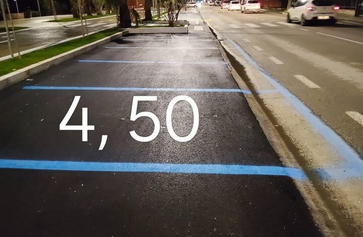 Alba Adriatica. “I nuovi parcheggi sono un capolavoro di equilibrismo: 4 metri di asfalto e 50 cm di ‘zanella’ di scolo inglobata nello stallo. Perché accontentarsi di un parcheggio vero quando puoi avere una canaletta come prolunga per rientrare, per il rotto della cuffia, nel D.P.R. 495/1992?”.