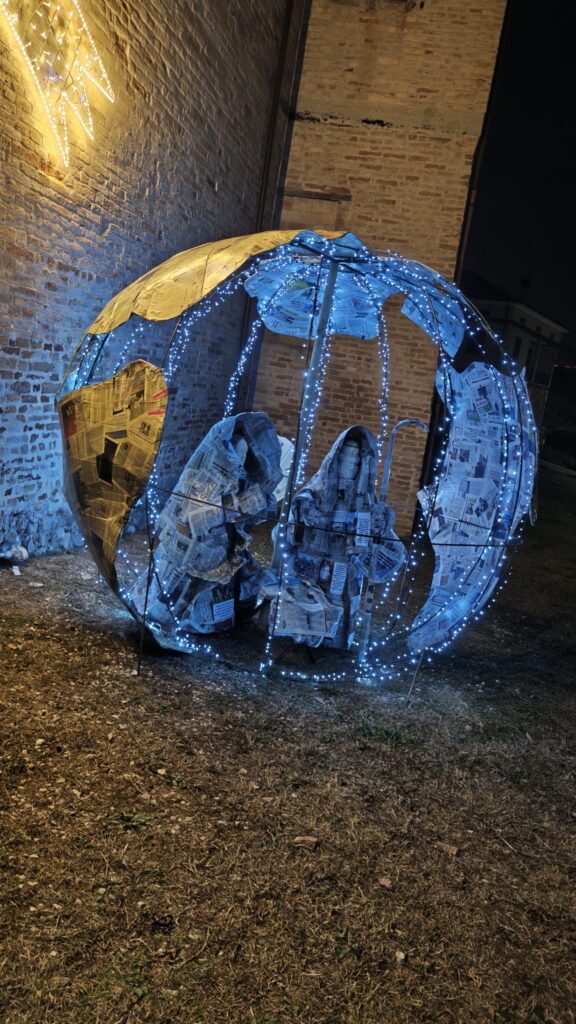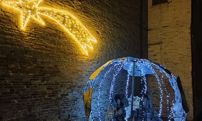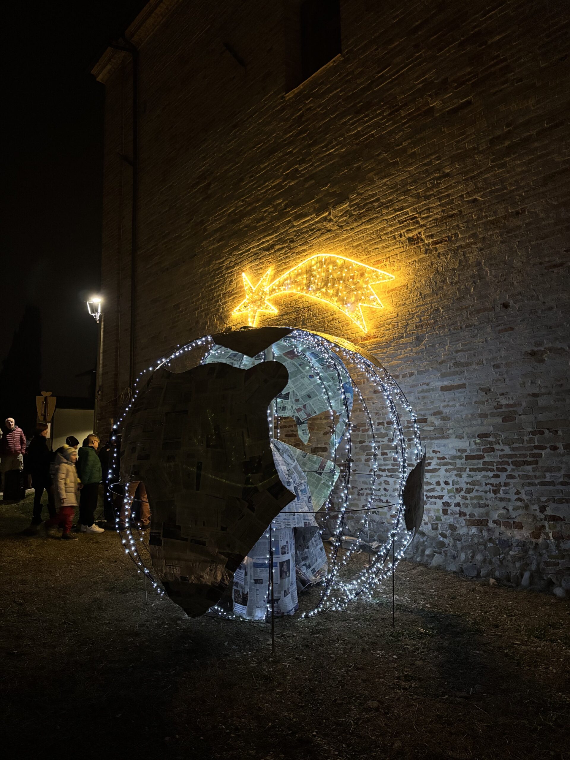 Ancarano. Una creazione natalizia tutta particolare: un presepe interamente realizzato con giornali e carta riciclata.