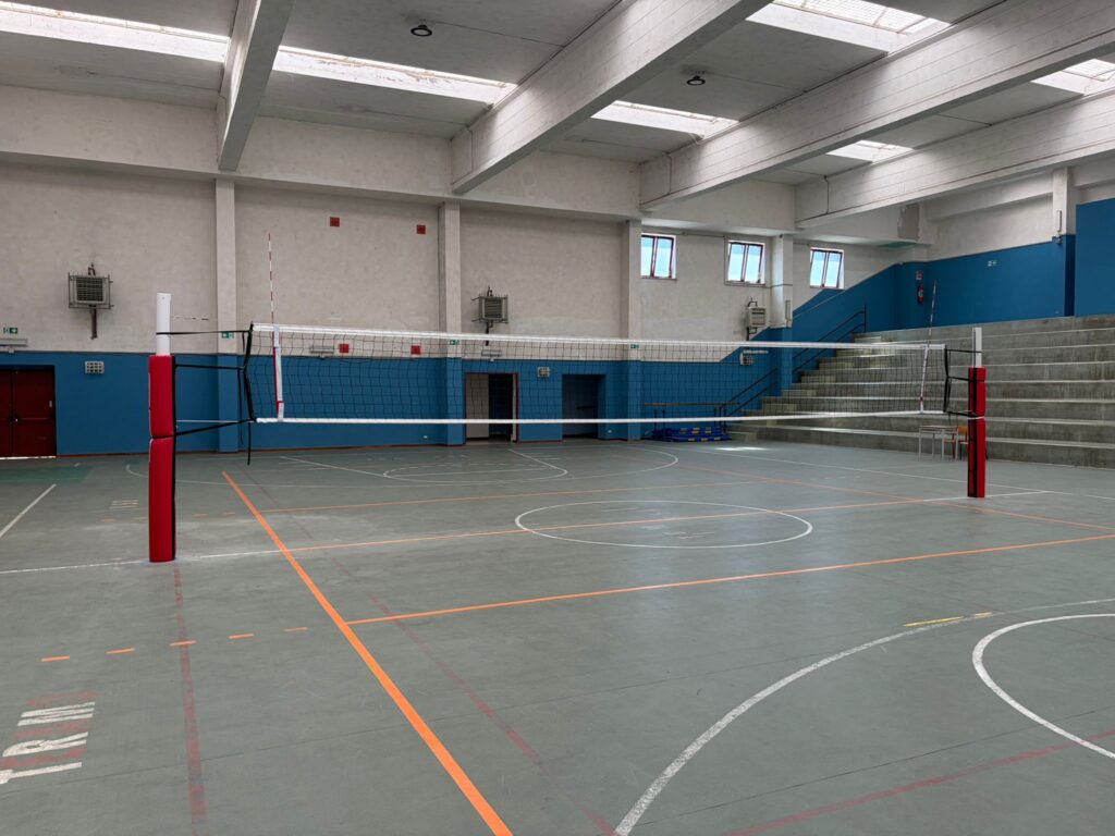 I.T.G. “C. Forti”. Anche qui intervento all’interno della palestra scolastica con l’obiettivo di migliorare la funzionalità e la sicurezza dello spazio dedicato all’attività sportiva con la sostituzione dell’impianto da pallavolo esistente con un nuovo impianto con pali in alluminio, rete professionale con bande laterali e superiore rinforzate, dotata di cavi in acciaio per la tensionatura.