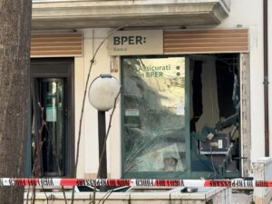 Subito dopo sono arrivati anche i Vigili del Fuoco che, secondo una prima ricostruzione, non avrebbero rilevato danni strutturali all’edificio che ospita diversi appartamenti e, al piano terra, la banca che, al suo interno, è quasi completamente distrutta.