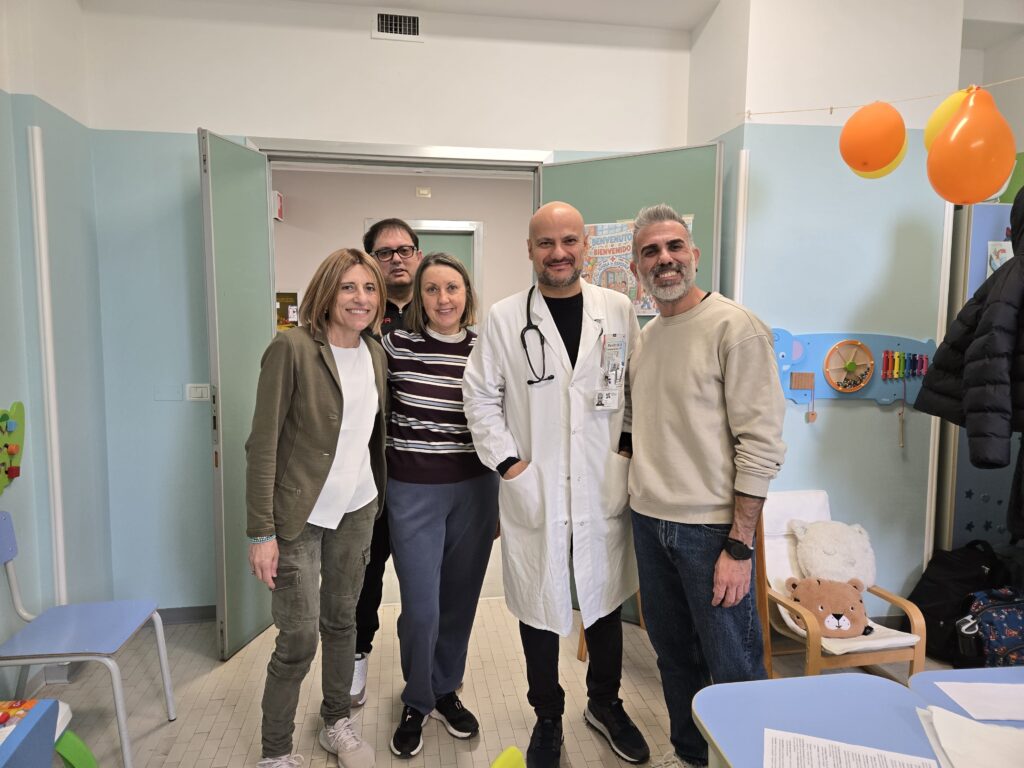Hanno accolto la delegazione Pietro Ripani, responsabile del Centro di riferimento regionale per la fibrosi cistica, Silvia Di Battista, responsabile di Pediatria e del Centro di riferimento regionale di auxologia pediatrica, la coordinatrice infermieristica Maria Di Sabatino e il personale sanitario in servizio.