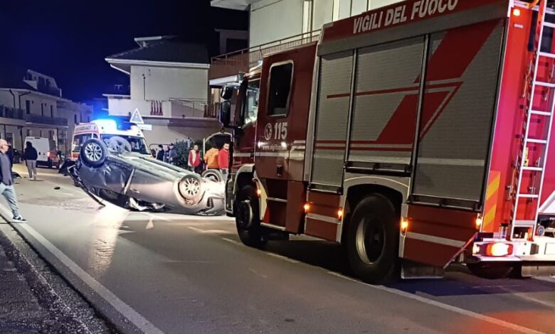 L’auto si è cappottata in via Indipendenza.