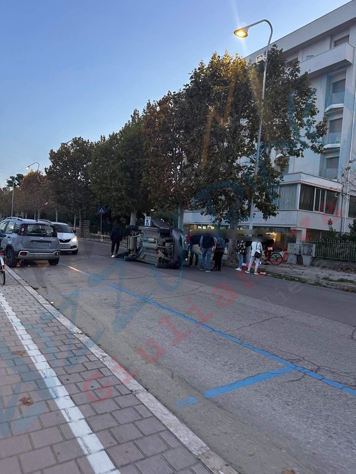Giulianova. Una vettura, con una donna alla guida, si è cappottata oggi pomeriggio, 1 novembre, sul lungomare di Giulianova, all’altezza dell’Hotel Royal.